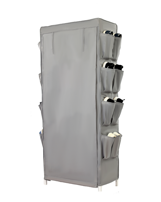 Gray Shoe Rack W/Fabric Cover, 8 Shelves, and 8 Pockets On Each Side