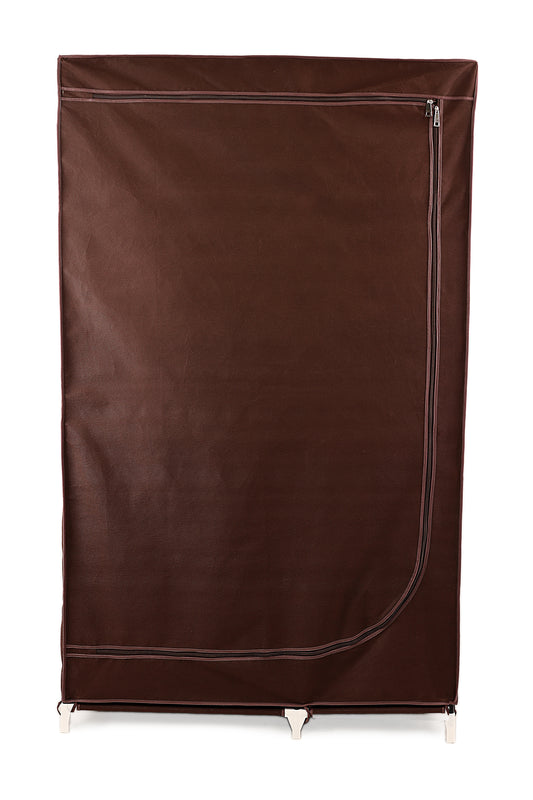 Brown Foldable Non-Woven Wardrobe With Four Shelves, a Hanging Bar, and Twelve Side Pocket