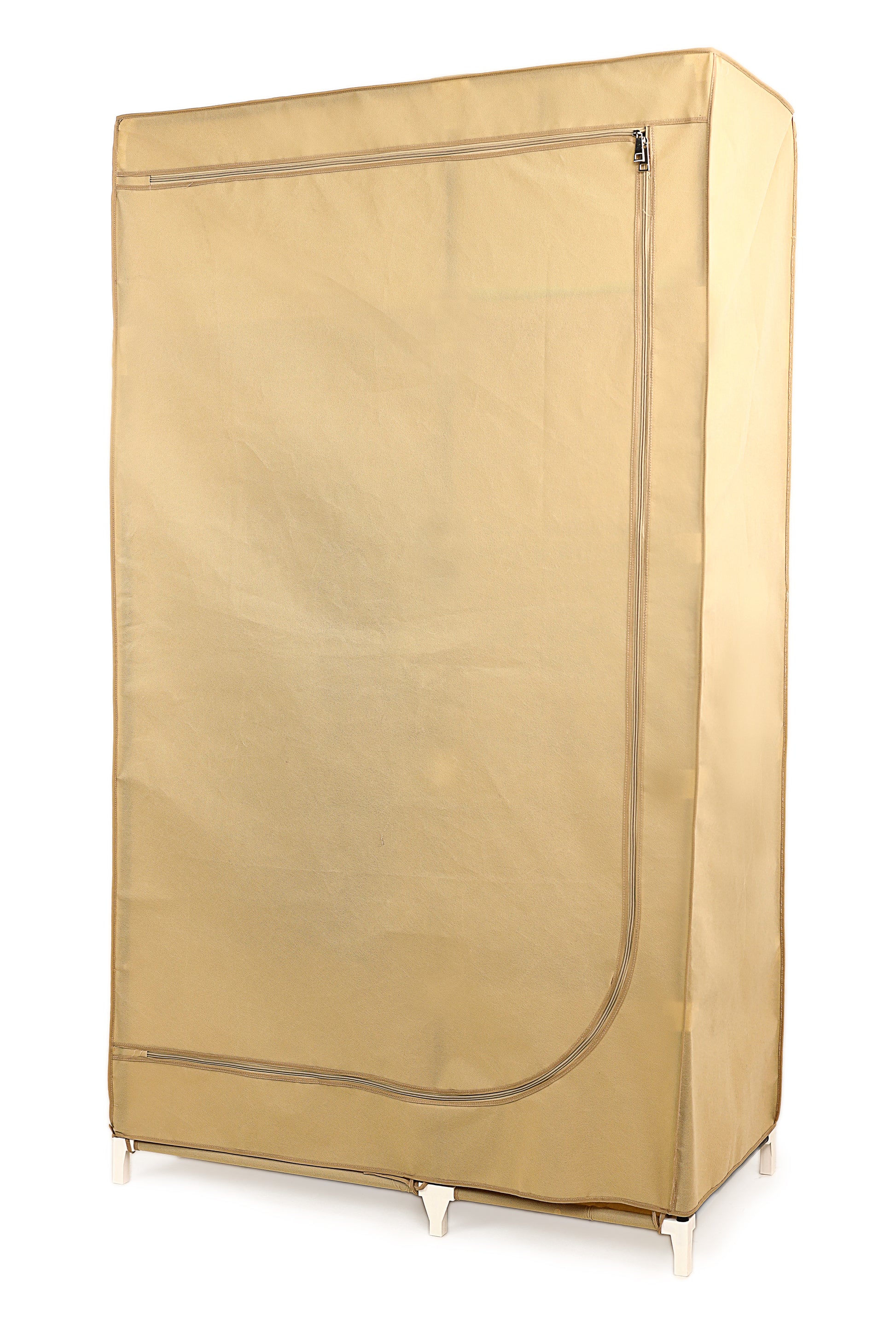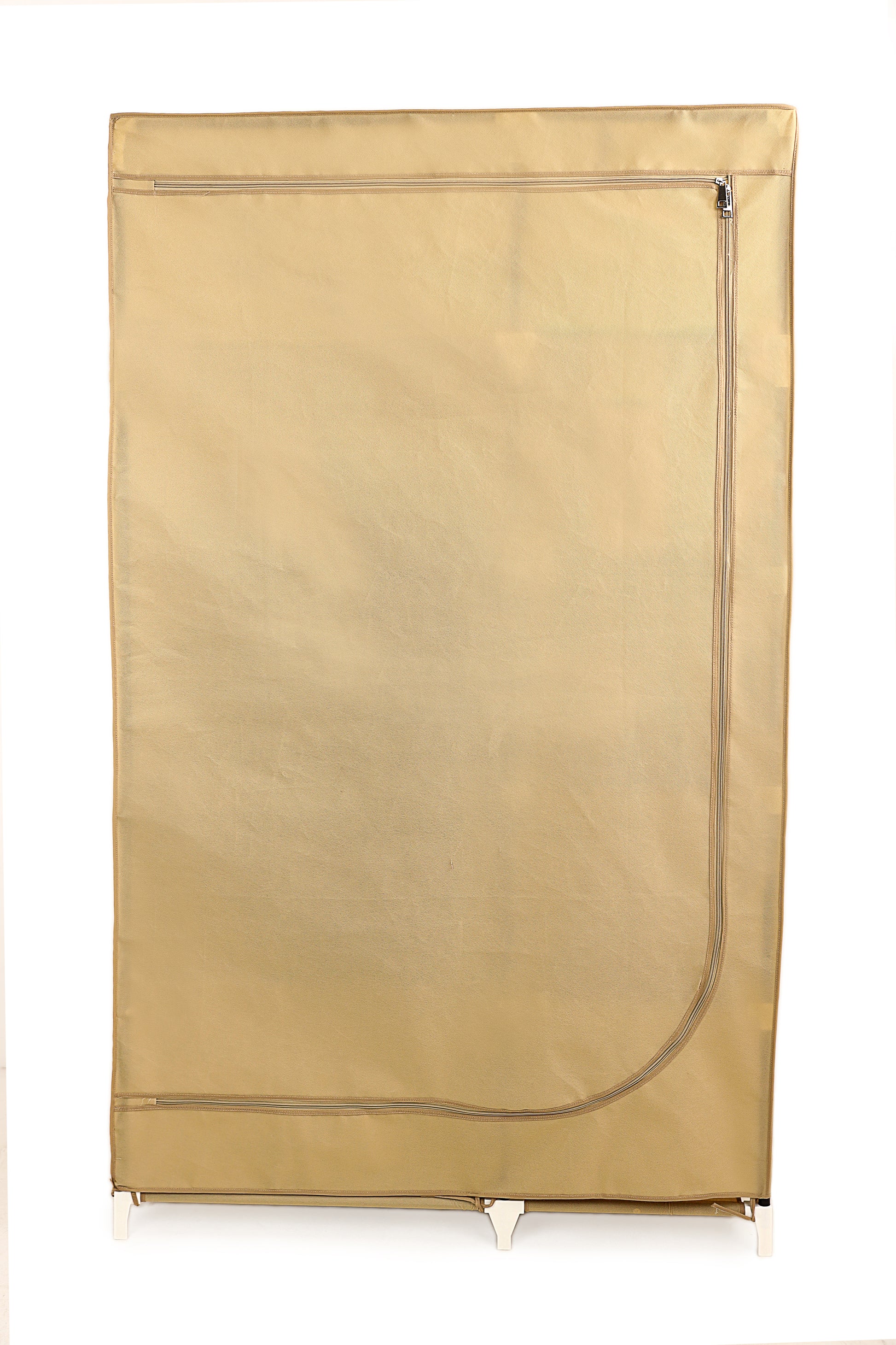 Beige Foldable Non-Woven Wardrobe With Seven Shelves and a Hanging Bar